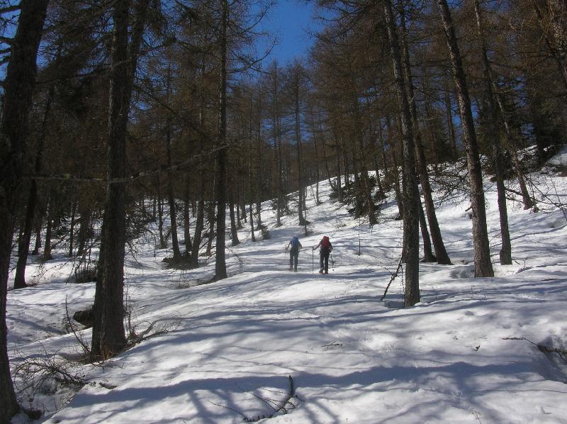 Lasciato ponte Maira con direzione sud si giunge a la Grangie Rossetto 1526 mt., si prosegue seguendo i corridoi che si aprono nella pineta lungo il Rio Ciarbonet, lasciando sulla sx il Rio Selletta.