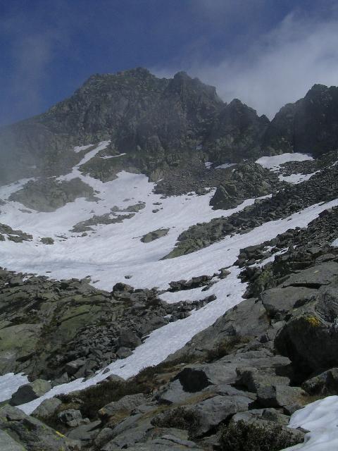 Dalla vetta si prosegue in direzione est (bolli azzurri e rosso sbiadito, sentiero D23) e si ridiscende la cresta sud est attraverso qualche roccetta attrezzata e ripido sentiero fino a riguadagnare una sorta di antecima (canaponi), la si risale, e si ridiscende perdendo quota meno rapidamente e con lungo traverso fino a una sorta di ampio pianoro (nevai a inzio stagione). Attraversatolo con una leggera risalita si guadagna la caratteristica zona di rocce montonate che portano alla conca del Lago del Monte Rosso alla vostra dx, da qua si scende in direzione sud-est fino al bivio della cappella degli Alpini. (fonte www.gulliver.it)