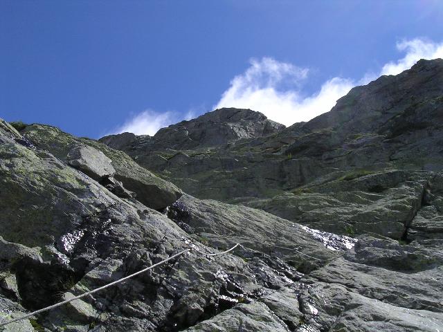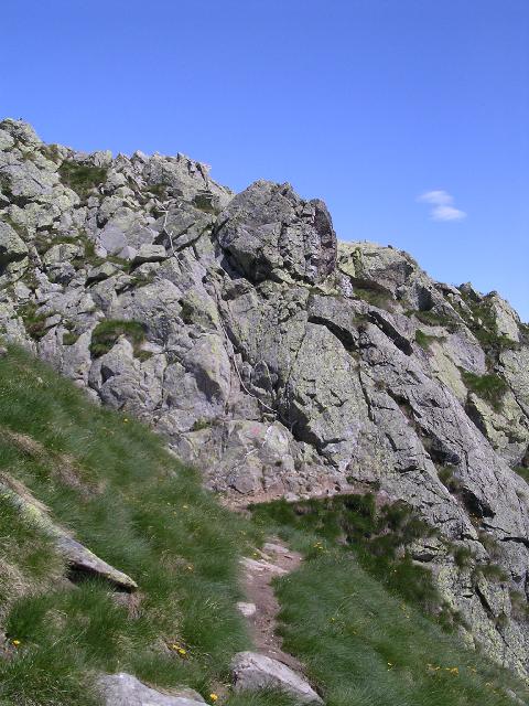 Dalla funivia si seguono le indicazioni per il rifugio Coda fino ad arrivare al Lago Mucrone, poco prima vi è una cappella degli alpini sulla dx di questa vi è un’evidente bivio da imboccare, pochi metri dopo si incontra un ‘altro bivio con il D23 col Chardon (ferrata Ciao Miki), lo si trascura (sarà la vostra via di ritorno), e si prosegue per il rifugio Coda (C11). Con una piccola salita sovrastante il lago si guadagna la Bocchetta del Lago e si prosegue sul sentiero per il Coda sempre C11 perdendo quota attraverso continui saliscendi e percorrendo tutto il versante sud-est del Monte Mars. Nell’ultima parte il sentiero diventa a “balcone” e parecchio panoramico (presenza di canapone utili solo in caso di ghiaccio o neve). Dopo questo tratto si risale più decisamente fino a guadagnare il bivio per il lago Goudin e monte Mars; si abbandona il sentiero per il Coda si guadagna la cresta spartiacque, si scende per circa 50 mt sul lato valdostano e si reperisce (palina gialla) il bivio con il sentiero attrezzato per il monte Mars sulla vostra dx scndendo (bolli gialli e poi azzurri). Qua iniziano fin da subito i tratti attrezzati: si attraversano alcune pietraie e placche rocciose, verso un intaglio della montagna e con facile arrampicata (canaponi) si guadagna la cresta, per abbandonarla subito dopo percorrendo sotto il filo di questa il lato biellese, e per roccette attraverso ripidi prati e canaloni erbosi si riguadagna la cresta in prossimità della vetta.